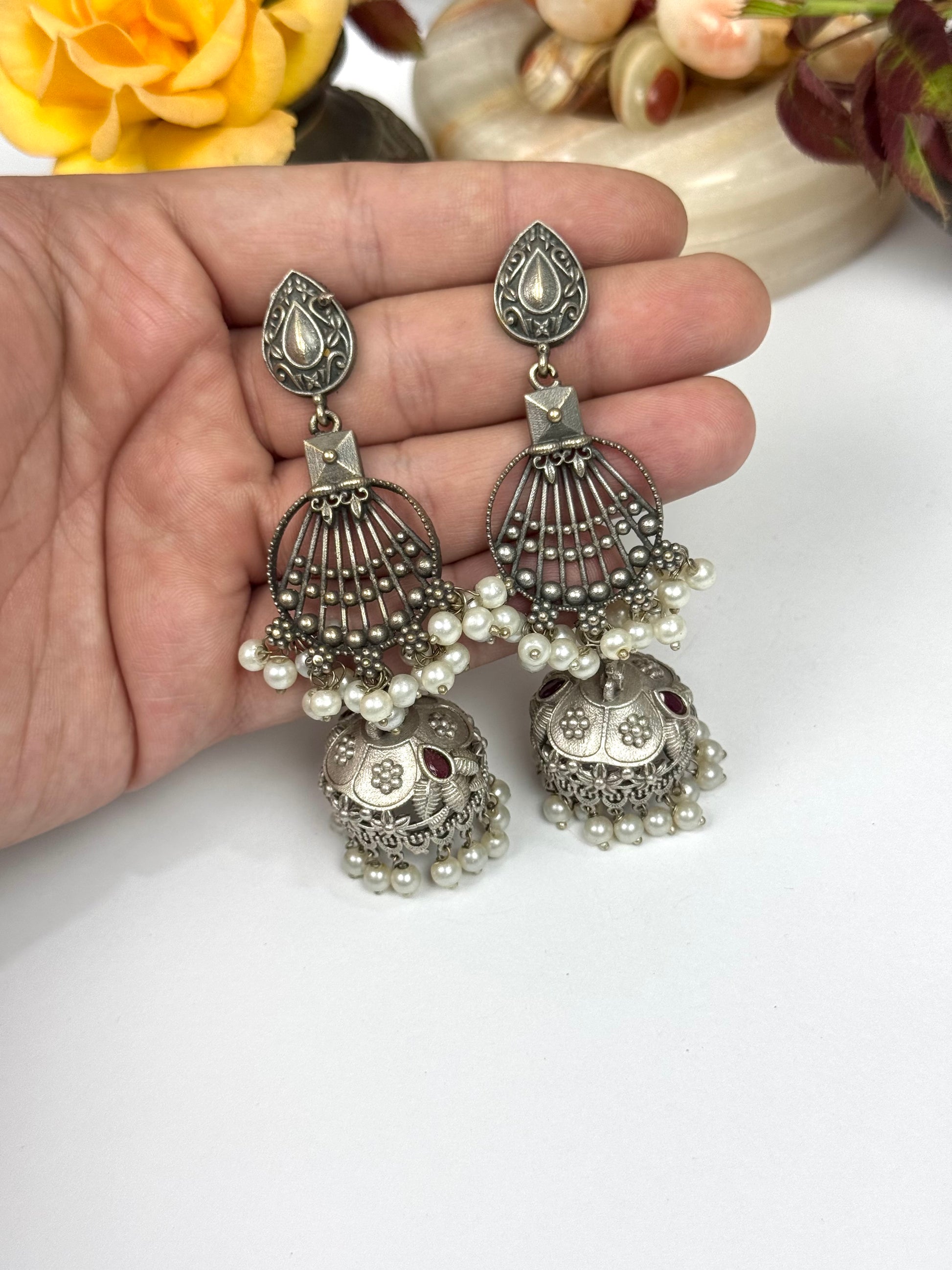 Add a touch of bold elegance with this premium oxidised Earrings . Featuring a beautifully detailed Earrings , it's perfect for ethnic and fusion looks. Lightweight, stylish, and effortlessly statement-making